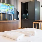 Además de una zona de comedor y un balcón, las habitaciones en el hotel Azure Sea View Apartments están equipadas con TV de pantalla plana con canales vía satélite. Todas las habitaciones del alojamiento incluyen una nevera y menaje de cocina, así como un bidé, un inodoro separado y ducha.